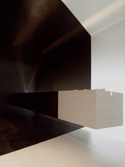 浮遊させたカウンターで目に見える物質の重量を無視し、ツートンカラーで空間のかたちを無視し、本来あるべき姿を解体することで、違った存在価値を見いだそうとしました。